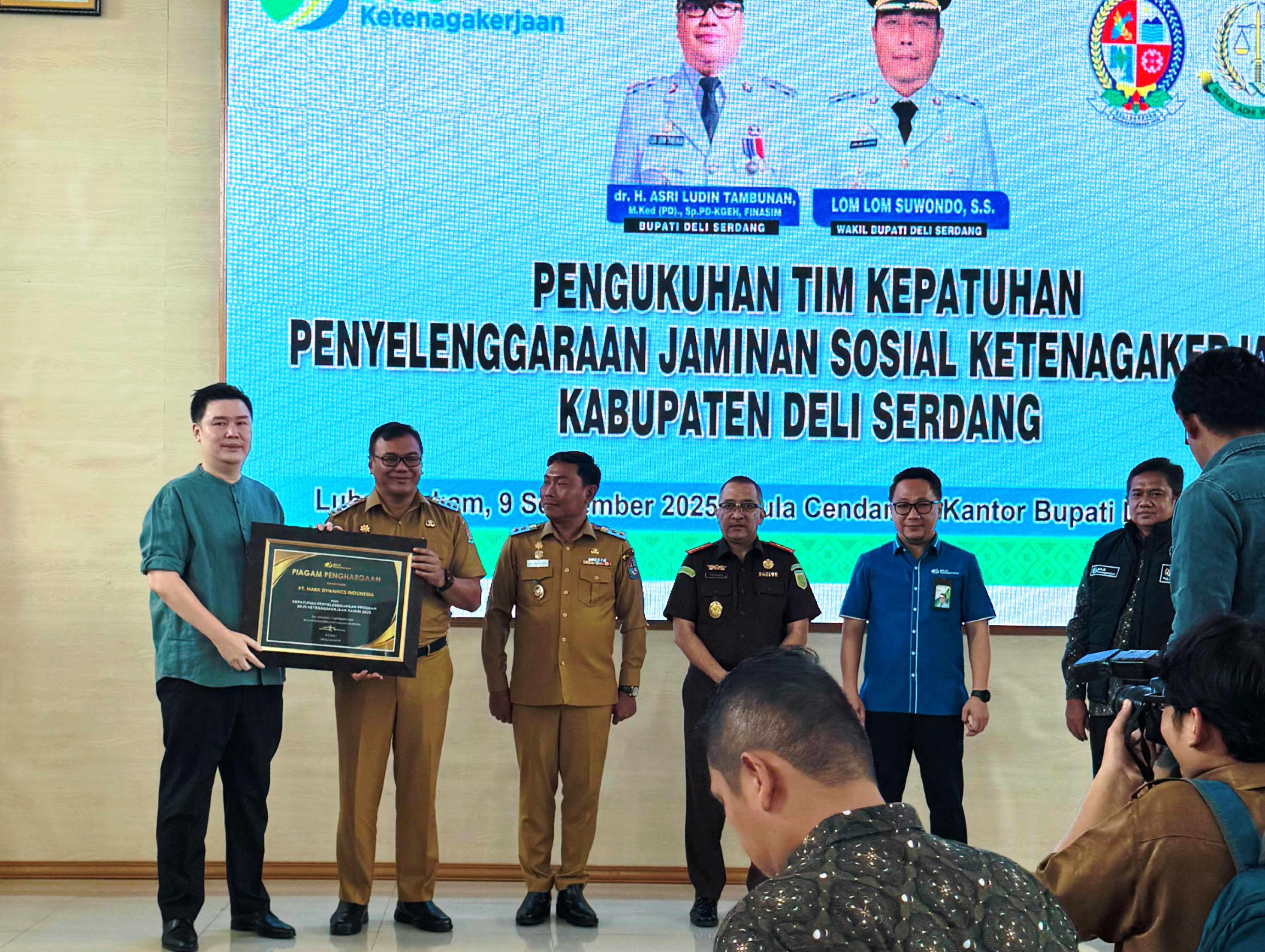 Piagam Penghargaan BPJS Ketenagakerjaaan bersama Bupati Deli Serdang